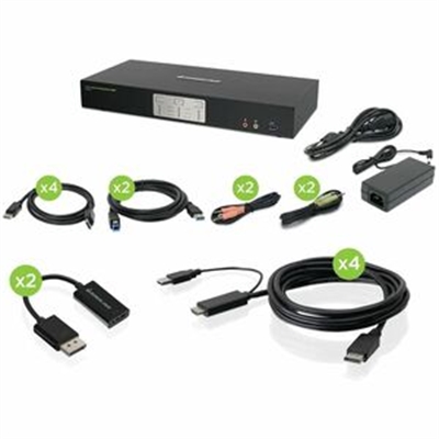 Boost your multi-monitor workstation with superior 4K video. Share dual Cinema 4K DisplayPort or HDMI monitors (4096 x 2160 @60Hz) and operate two computers with one keyboard, mouse, and two monitors.