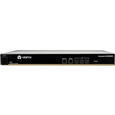 The Vertiv Avocent ACS 8000 Advanced Console Server system integrates connectivity features for secure in-band and out-of-band network remote management of IT assets from anywhere in the world. Includes dual AC power supply and analog modem. The system offers scalability and reduces operational costs for a range of applications from insurance and financial institutions, to education, government, healthcare, oil and gas, the military, retail/wholesale and more.