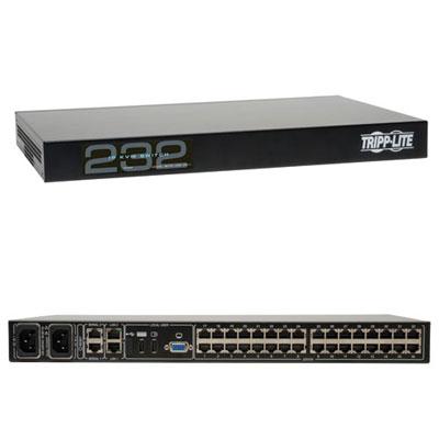 B072-032-IP2-K 32-Port, 2+1 User NetCommander Cat5 IP KVM Switch with Sixteen USB Dongles. Simultaneous support for 3 users (1 local, 2 remote). Java-based application allows for control of a target server via web browser from any location over a secure IP connection. Remote authentication support – RADIUS and LDAP/S. Dual Serial Ports – Connect serial manageable devices such as PDU’s, firewalls, and routers. Dual Ethernet and Power provides redundancy in the event of a crash.