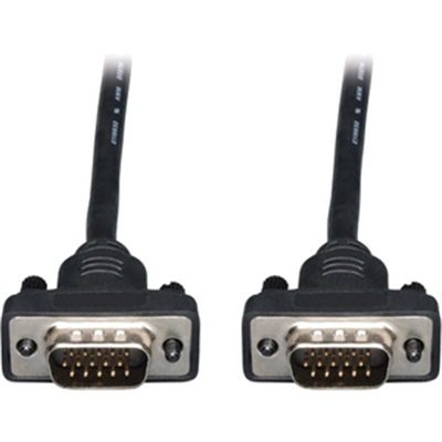 Tripp Lite’s 3-ft, PVC, SVGA / VGA Compact monitor replacement cable, features a 40% reduced diameter cable, and smaller molded connectors. The mini-coax (RGB) and paired video wire construction delivers superior video signal quality, up to 2048×1536. Nickel plated connectors and gold plated copper contacts ensure excellent conductivity. Double shielding (foil and braid) provides maximum EMI/RFI protection. Both high density DB15 male connectors are molded and have integral strain relief to ensure long life. Tripp Lite warrants this product to be free from defects in materials and workmanship for life. Key Features Slim, compact SVGA / VGA Male – Male Cable, 3ft 40% thinner cable than standard VGA Cables Smaller, more compact, molded ends than standard VGA cables Supports up to 2048×1536 Resolution Foil and Braid shielded for superior noise suppression Package Includes 3-ft, Compact SVGA / VGA M/M Monitor Cable