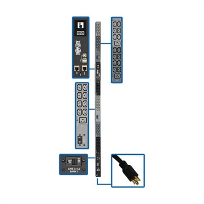 Tripp Lite 10kW 3-Phase Monitored PDU, LX Interface, 208/240V Outlets (42 C13/6 C19), LCD, NEMA L15-30P, 1.8m/6 ft. Cord, 0U 1.8m/70 in. Height, TAA