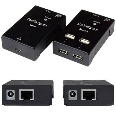 Connect four USB 2.0 devices away from your computer over Cat5 up to 130ft (40m) or Cat6 up to 165ft (50m) – USB 2.0 Extender over Ethernet – Cost-effective & compact USB extension over single Ethernet cable – Features 2 top ports – OS independent – Transfer rates of up to 480 Mbps – Kit includes a transmitter and a 4 port hub receiver – Plug-and-play and hot-swap compatible