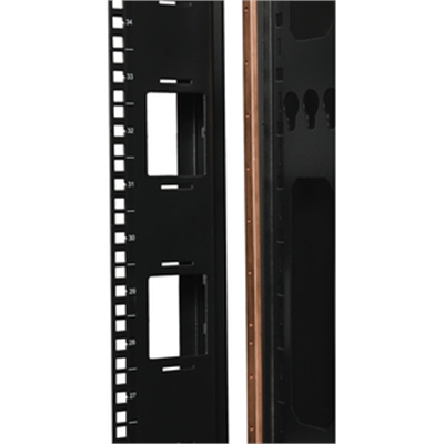 The SRGROUND is a full length (42U) bus grounding bar made from heavy-gauge solid copper that attaches to Rack Enclosure Cabinets or Open Frame Racks to provide convenient ground contact for standard rackmount equipment. Every U space has a drilled and tapped hole to allow a ground wire “jumper” to be installed. The jumper then bridges to the individual pieces of equipment, allowing a direct path to ground rather than going through surrounding equipment. The SRGROUND can mount in a Tripp Lite enclosure in two ways, it can be screwed into the Rack Enclosures (hardware included) or it can be installed using the tool less mounting buttons in the Open Frame Racks. Package Includes SRGROUND Copper Bus Grounding Bar Mounting hardware Owner’s Manual