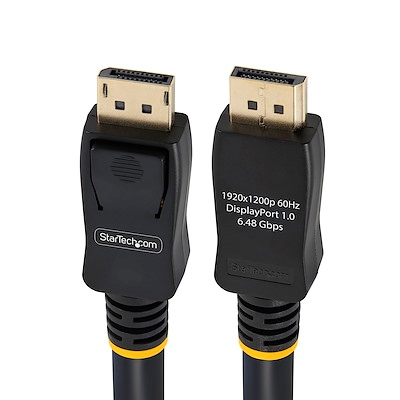Connect DisplayPort-equipped devices over longer distances – 50ft DisplayPort Cable with Latches / Black DisplayPort Cable / DisplayPort Male to Male / Latching DisplayPort Cable – 50 ft Long DisplayPort Cable / DP to DP – 2560 1600 – Supports a maximum bandwidth of 10.8 Gbps – Latching connectors secure cable against accidental disconnection – Designed and manufactured to DisplayPort standards – Guaranteed reliability with a lifetime warranty .