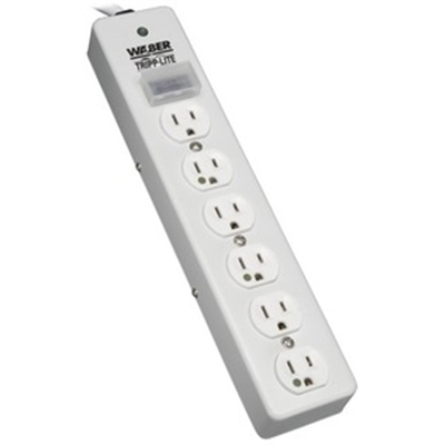 Tripp Lite’s SPS-615-HG offers 15 amp capacity AC surge suppression and power distribution in a rugged all-metal outlet strip for 120 volt applications. Includes 6 output receptacles, 15 foot AC power cord, built-in resettable circuit breaker and 450 joules AC surge suppression. Features safety enhanced hospital grade plug and outlets. Switchless design prevents accidental shutoff. Optional use keyhole mounting tabs. 15 amp circuit breaker controls power to all outlets and protects against overloads. LED indicator verifies line power available.