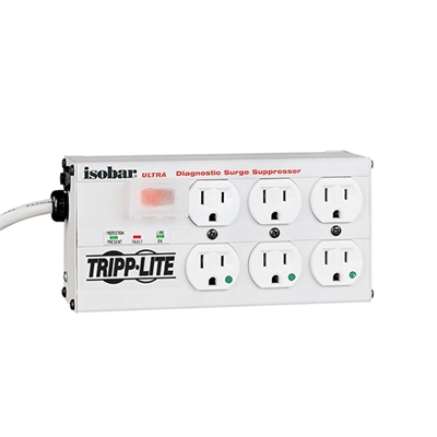 Loaded with a generous combination of high quality components, near indestructible all-metal case and unique noise filtration system, the Isobar offers the highest level of protection attainable in a multi-outlet strip. Robust surge suppression circuits with sine-wave tracking offer extreme levels of protection against the heaviest normal mode surge conditions. Isobar’s unique protection system combines large torroidal chokes, ferrite rod-core inductors, HF/VHF capacitors and metal oxide varistors into an exclusive isolated filter bank that removes EMI/RFI interference, even noise generated by other pieces of connected equipment. ISOBAR6ULTRAHG offers 6 high quality hospital-grade outlets arranged in one filter bank to prevent system crashes, reboots and performance problems common as noisy system peripherals are powered off and on. Surge suppression rated at 600 joules. Widely spaced NEMA 5-15 hospital-grade outlets accommodate up to 3 large transformer plugs without blocking outlets.