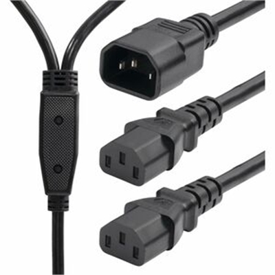 6ft (1.83m) Universal power cord with IEC 60320 C14 to 2x C13 connectors; Rated to carry 250V at 10A (Max) Made with UL Listed components; Durable molded connectors; 100% Copper wire; Fire Rating: VW-1 Jacket Rating: SJT; Temperature Range: -4 to 221 F; Cable O.D.: 0.33in TAA Compliant; IEC C13 connector works with desktop computers/servers/monitors/PDUs/printers; Split a single power cord to power two devices or dual monitors