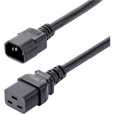 6ft (1.8m) Heavy Duty Power Cable with IEC 60320 C14 to IEC 60320 C19 connectors; Rated to carry 250V at 15A (Max) – Made with UL Listed components; Durable molded connectors w/strain reliefs; 100% Copper wire; Fire Rating: VW-1 – 14AWG; Jacket Rating: SJT; Temperature Range: -4 to 221 F; Cable O.D.: 0.36in – TAA Compliant; IEC C14 works with power supplies and PDUs; IEC C19 connector works with servers/switches and rackmount appliances.