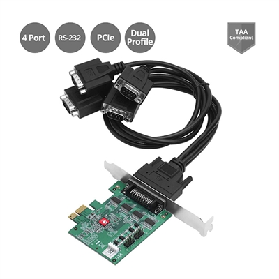 Adds four RS-232 serial ports to PCI Express enabled computer systems.