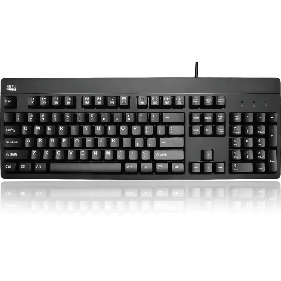 The Adesso® AKB-630UB antimicrobial waterproof desktop keyboard is the perfect keyboard for users looking for a solid keyboard that will work in an environment potentially exposed to liquids, moisture, dust or germ, such as School, Restaurant, Bank, Medical Clinic, Office, POS, Industry and warehouse environment. This keyboard also features membrane keys switch for increased productivity along with multi-functional hotkeys that give you quick access to your internet and media player tools. (Solution: Health)