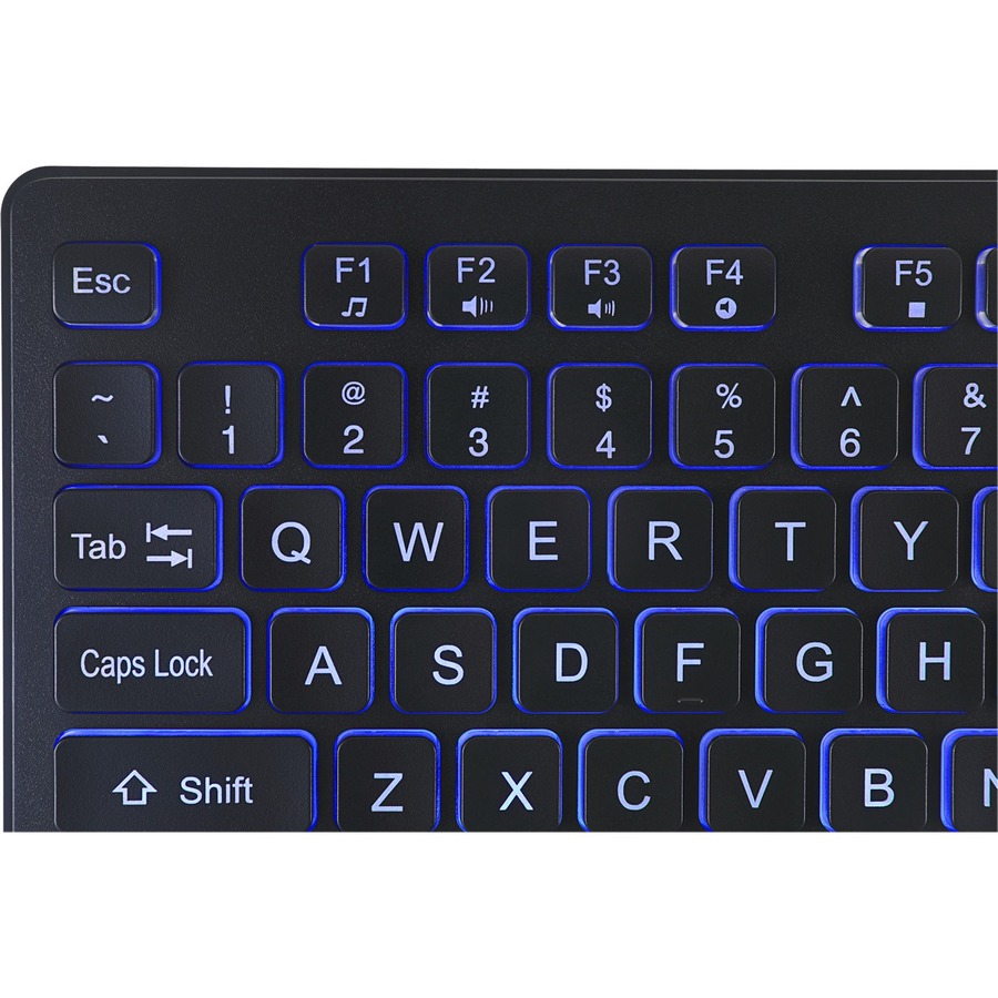 The large 2X size black print on blue LED keys provide excellent contrast and larger appeal over tradional keyboards that have small white letters on dark black keys.