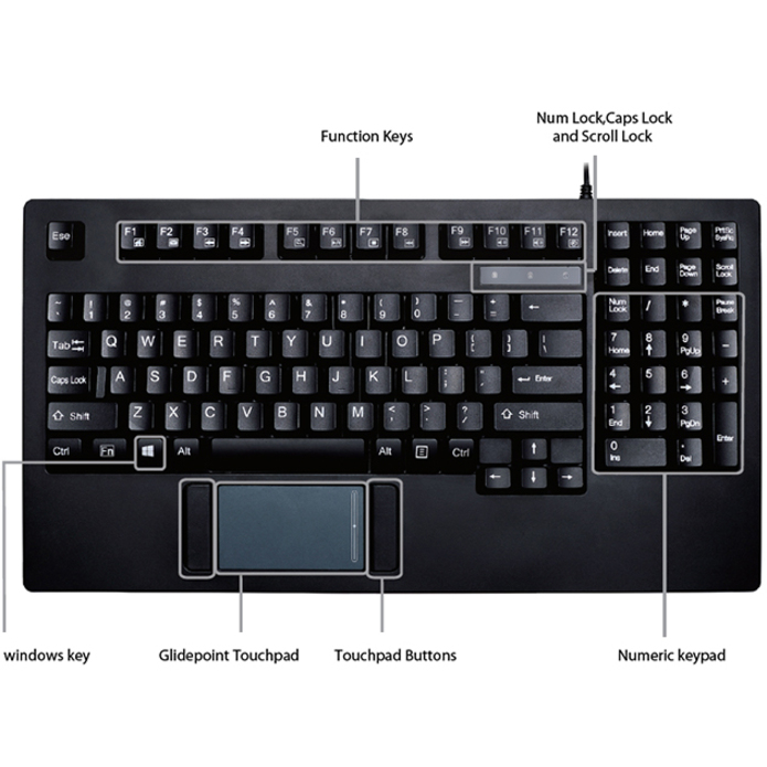 - Built-in GlidePoint TouchPad (By Cirque) – Featuring a GlidePoint TouchPad by Cirque, the AKB-425UB supports essential gestures such as scrolling, tap to click, and dedicated left and right click buttons, all with pinpoint precision.Featuring a GlidePoint TouchPad by Cirque, the AKB-425UB supports essential gestures such as scrolling, tap to click, and dedicated left and right click buttons, all with pinpoint precision.