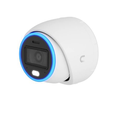 Allweather, vandalproof 4K PoE+ turret camera with enhanced AI capabilities and IR and visible LEDs for night vision.