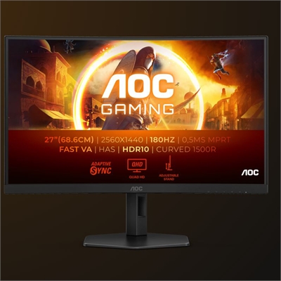 **VENDOR EOL** Elevate your gaming experience with the AOC CQ27G4X, a 27-inch curved gaming monitor designed to deliver exceptional performance and stunning visuals. With its QHD resolution of 2560×1440 and a 180 Hz refresh rate, this monitor ensures a sharp, vibrant, and fluid display for both gaming and multimedia use. The 1ms response time minimizes ghosting and motion blur, providing quick and precise visual feedback crucial for fast-paced games. The monitor’s ergonomic design includes a height-adjustable stand for maximum comfort and customizable viewing angles. Whether you’re deep into an intense gaming session or enjoying multimedia content, the AOC CQ27G4X delivers quality and performance at every turn.