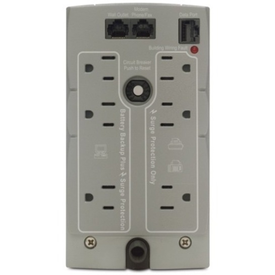 Protect computers, wireless routers, IOT devices, and security systems with the APC Back-UPS BK 500VA. APC Back-UPS provide backup battery power during power outages and continuously safeguard devices from fluctuating power conditions and surges. With 6 outlets, this tower UPS (uninterruptible power supply) provides seamless battery power to connected electronics. The 300w capacity is ideal for workstations, keeping you connected and productive during power fluctuations. This computer backup offers lifetime guaranteed surge protection with a ,100,000 equipment protection policy. Use the included PowerChute software to configure settings and set up automatic graceful shutdown of a connected PC in the event of an extended power outage. Audible alarms provide notification of changing utility power and UPS conditions. Audible alarms can be muted. Package Contains UPS, CD with software, Cord management straps, USB cable, User manual