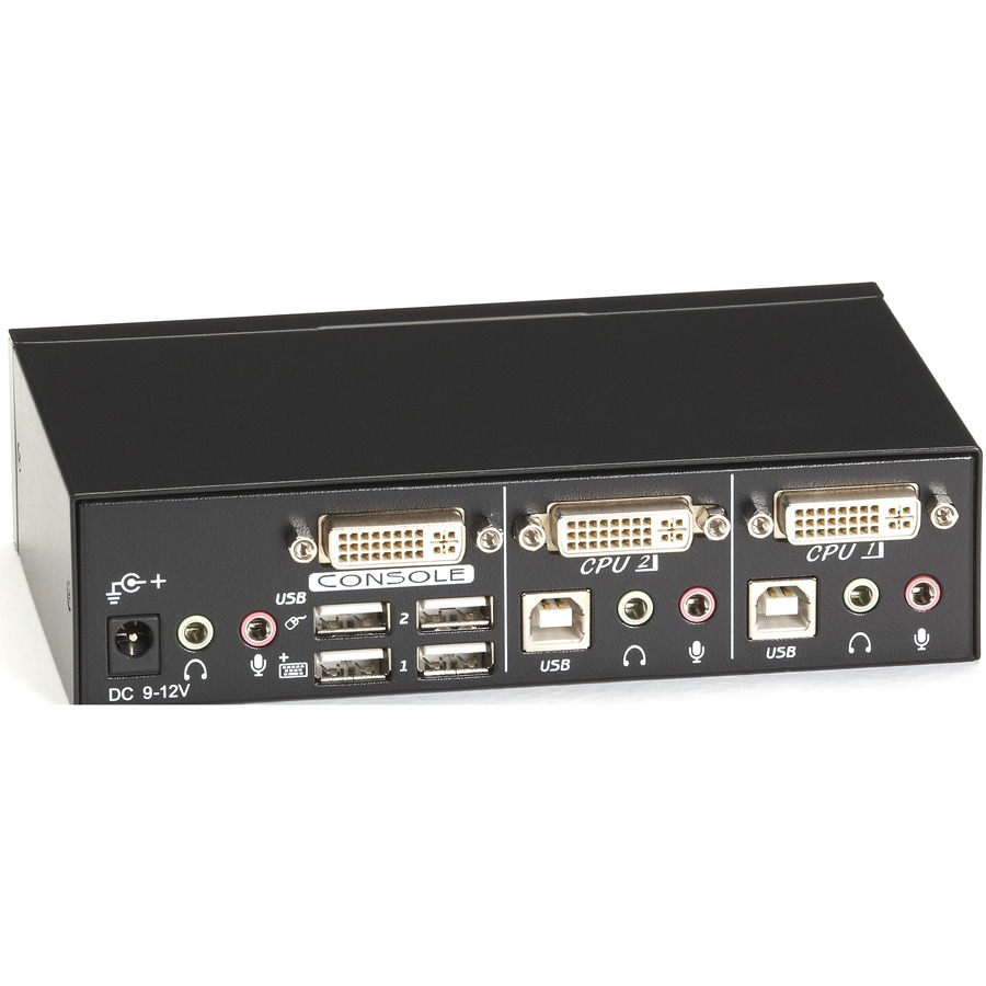 This two-port USB KVM switch enables you to access two CPUs with high-resolution DVI video connectors from a single workstation. Set up desktop KVM switching with high-quality DVI-D video.