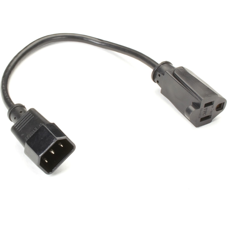 - Converts an IEC 320 socket in a power strip or PDU to a 3-prong outlet.