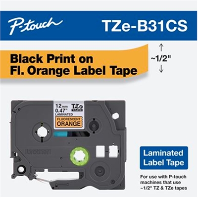Black Print on Fluorescent Orange Laminated Label Tape for P-touch Label Maker, 12mm 0.47 wide x 5m 16.4 long P-touch Laminated Label Tape 1/2″ (12mm) Black on Fluorescent Orange. For use with P-touch Label Makers.