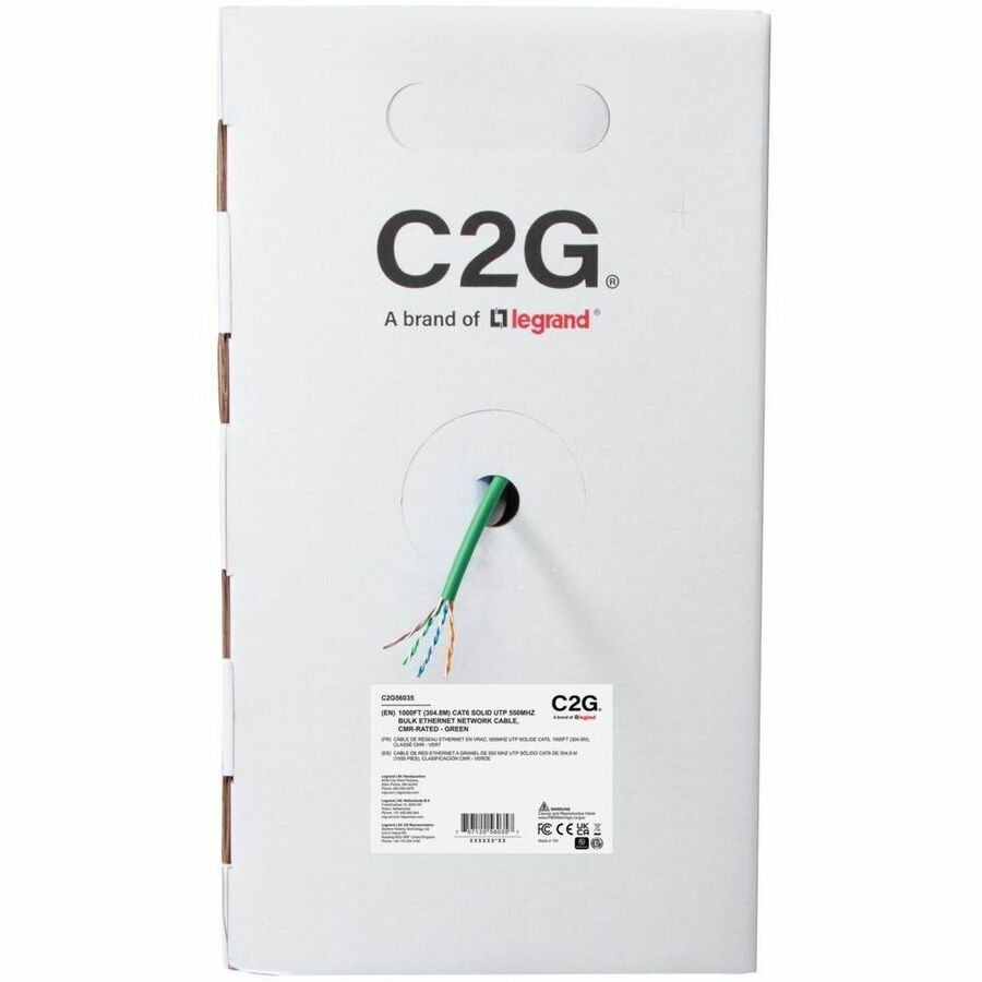 The C2G56035 TAA-Compliant Cat6 Bulk Cable is an excellent choice for customized horizontal network installations that demand high-speed and high-bandwidth performance. This cable is engineered to meet the ANSI/TIA-568.2-D (2018) standard, supporting a data frequency range up to 550 MHz, making it ideal for both commercial and residential networks where reliable and fast connectivity is essential. This bulk cable comes with a riser, CMR-rated jacket, ensuring compliance with safety standards for in-wall installations. Being TAA compliant, the C2G56035 is suitable for government and federal projects, meeting the necessary regulations for these environments. The cable is also packaged in an innovative, sustainable design that reduces plastic and cardboard waste by 40%. This slim packaging not only saves space but also offers a smooth cable-pulling experience, making installations quicker and more efficient, while contributing to a greener, more eco-friendly approach.