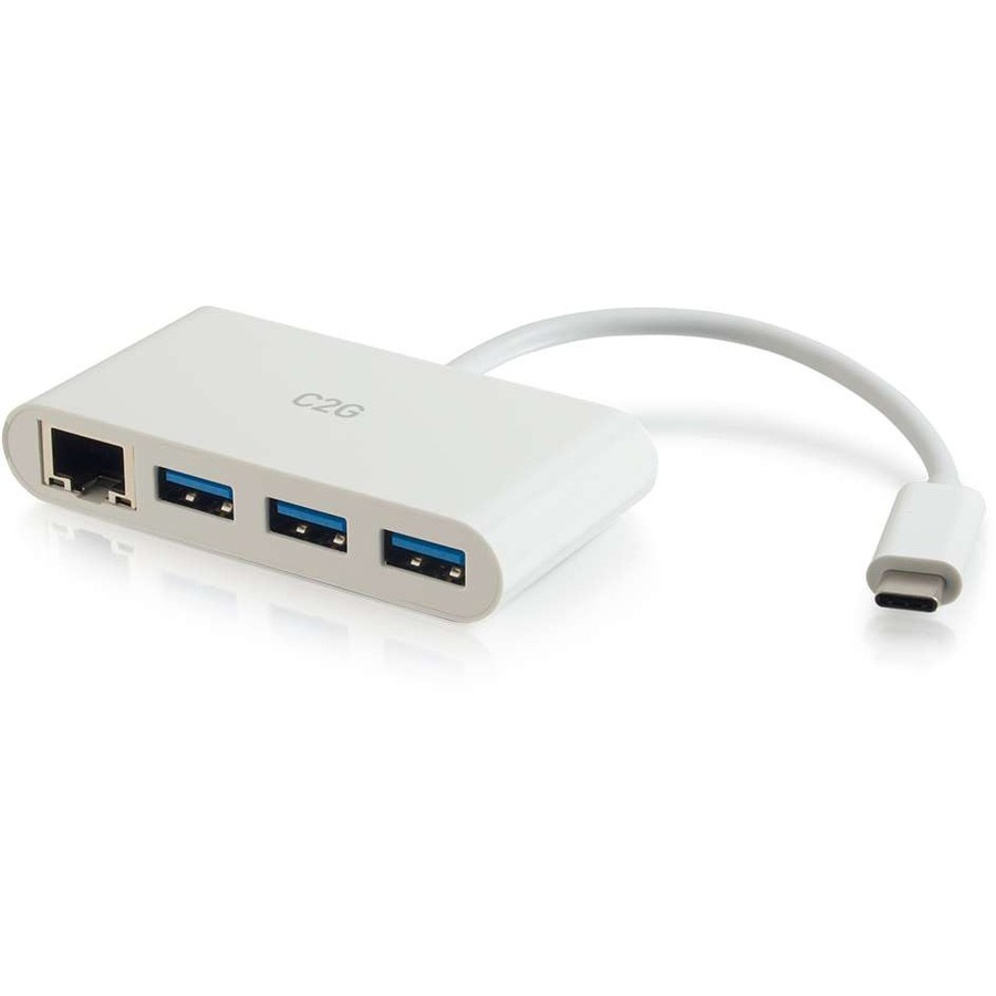 The USB-C to Ethernet Adapter with 3-Port Hub is an ideal solution for wired network connectivity and data transfer on the go, in the office, or any work space. This adapter connects to a USB-C or Thunderbolt 3 enabled laptop, tablet, or desktop computer and features an Ethernet port and three USB 3.0 ports. This adapter is a perfect accessory for Apple, Microsoft Surface, and other leading laptops and tablets.