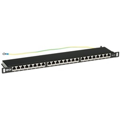Shielded 24Port Patch Panel Manages and Organizes HighDensity Cat6a Network CablingOrganize your highdensity Cat6a application without taking up too much valuable rack space. This shielded patch panel offers 24 fully shielded RJ45 ports with colorcoded dual IDC slots that are terminated using either a proper Krone or 110 punchdown tool. Both the front and rear connectors are clearly numbered and labeled (for custom naming) to help you identify individual cable runs. The patch panel supports T568A and T568B wiring standards and is fully rated for 10 Gbps Ethernet data transfer speeds in your network application.Condenses 24 Ports into Just 0.5U of Space in Your 19 in. Enclosure or Open Frame RackThe highdensity ULapproved patch panel supports mounting in only a halfU in EIAstandard 19inch racks, freeing up valuable rack space for other equipment. Included cable ties, grounding wire and a builtin strain relief bar help organize your connections, cut down on cord clutter, take stress off the connectors and maintain stable performance.