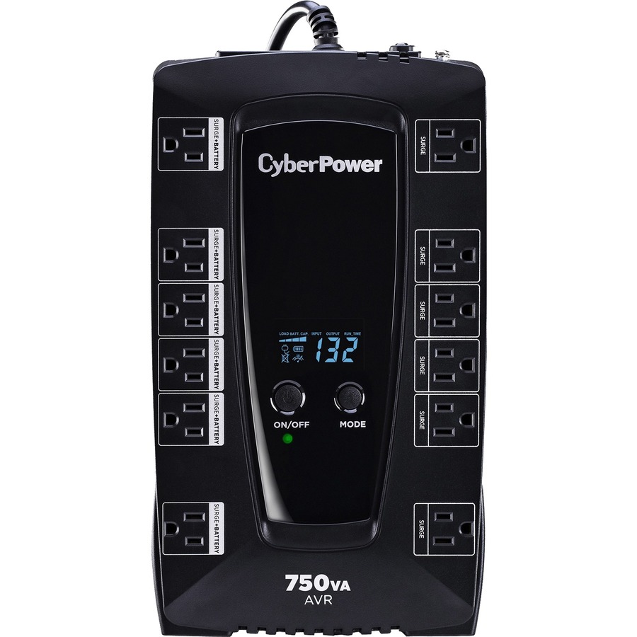 A compact UPS with line interactive topology, the CyberPower AVRG750LCD provides battery backup (using simulated sine wave output) and surge protection for desktop computers, workstations, networking devices, and home entertainment systems. The AVRG750LCD uses Automatic Voltage Regulation (AVR) to correct minor power fluctuations without switching to battery power, which extends battery life. AVR is essential in areas where power fluctuations occur frequently. The AVRG750LCD comes with a three-year warranty (including coverage of batteries) and a ,150,000 Connected Equipment Guarantee.