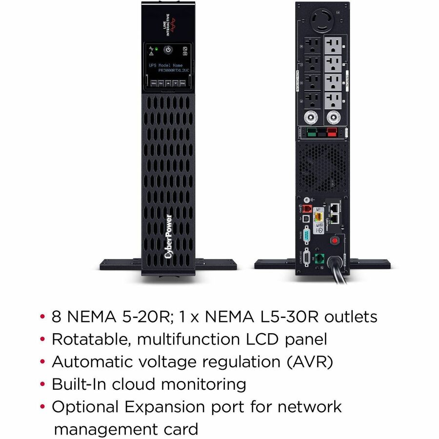 The PR3000RTXL2UC is a Smart App Sinewave rack/tower convertible UPS with line-interactive topology, surge protection, and battery backup. CyberPower’s Smart App Sinewave series creates a sine wave output devoid of power gaps which could cause unexpected shutdowns of sensitive equipment.