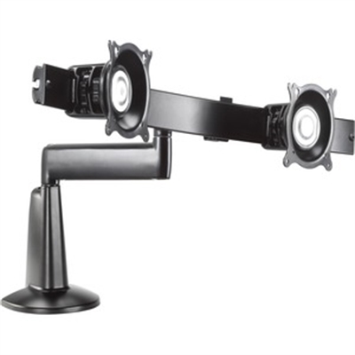 The KCD220 offers the ability to ergonomically mount dual displays, and articulate them in and out for optimal ergonomic positioning. Also check out the Kontour K2C22H products, which provide additional manual height adjustment on the column, longer reach, and other improved features and performance: K2C22HB K2C22HS Centris Technology provides smooth, fingertip tilt in all directions Screen angle stays set until you decide to readjust Clamp option allows mount to be installed from the top of the mounting surface Multiple mounting options: edge clamp, grommet clamp, grommet thrubolt Clean look with minimal hardware visible from underside of work surface Independently adjustable tension at pivot points for customized control; tension can be optimized for touchscreen use Quick, easy cable management with infinitely adjustable cable management clips VESA 75 x 75 mm and 100 x 100 mm compliant interface brackets available for nonVESA compliant displays Note: Mounting surface maximum thickness: 3.2 81 mm, grommet hole size: 0.38 3 1076 mm