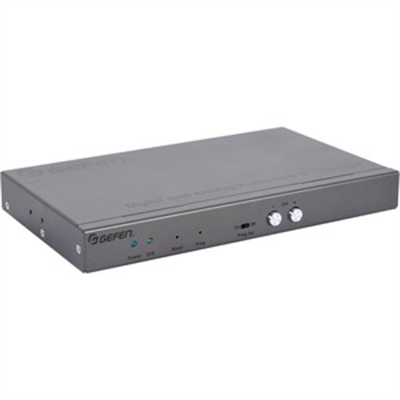 Gefens AV over IP solutions continue our tradition of providing high performance, scalable, expandable, and secure AV routing and distribution over a standard Gigabit Local Area Network. The Digital and Analog Audio over IP Sender (EXT-ADA-LAN-TX) and Receiver (EXT-ADA-LAN-RX) are new additions to Gefens family of AV over IP products, offering a much-needed audio-only option for background music, public announcements, and other applications where stand-alone audio needs to be distributed through the AV system. Audio input and output options include L/R Analog, Coaxial Digital, and Optical Digital. When using the digital inputs and outputs, 2-channel PCM and up to 5.1 channels of Bitstream can be distributed through the system. In addition to audio, RS-232 and 2-way IR can also be independently* routed and distributed for source and amplifier control. The entire Gen 2.0 product line, including the audio models, feature backward-compatibility with our first-generation products. Power-over-Ethernet allows the Sender and Receiver units to be powered through a standard PoE-enabled IP network switch, without the need for external power supplies. When used in conjunction with the EXT-CU-LAN Matrix Controller, system configuration is automated and quick. Its MFU (Mass-Firmware-Update) feature keeps firmware for the entire system up-to-date without the need to access and upgrade each unit separately. Enhanced network security by separating the control and AV networks is also made possible with the EXT-CU-LAN. Other control options include front panel buttons, web server interface, Telnet, UDP, and the Gefen Keyboard Switching Controller software (available for download at www.gefen.com). Gefen?s Enhanced API provides added functionality and facilitates use with third party controllers. The Gefen Gen 2.0 AV over IP products have been specifically designed for use with the Gefen Syner-G software, available for download at www.gefen.com. The Gefen Syner-? Discovery and Show-Me features greatly simplify initial IP configuration. Each cable run from a Sender to a Receiver or from a Sender or Receiver to the network switch can be up to 100 meters (330 feet). A built in 2-port Gigabit switch on the Receiver allows daisy-chaining of additional Receivers or other IP-enabled devices. In applications such as music and PA systems in very large venues, where there is a need to distribute sound to multiple locations, the ability to cascade Receivers removes the requirement for each cable to be run directly to the main network switch, thereby extending the range of these units far beyond the limits of a point-to-point audio or AV distribution system. The Sender and Receiver can be used as extenders in a one-to-one system, or as nodes in a virtual matrix environment where any source can be routed to any or all amplifiers, supporting up to 39,900 Senders and a combination of over 65,000 units. Applications include high performance AV and signage systems in sports bars, clubs, restaurants, board and huddle rooms, command and control centers, museums, airports, classrooms, auditoriums, hotels and retail establishments. The low-profile Sender and Receiver units feature a half-rack-width enclosure, perfect for rack-mounting using the Gefen EXT-RACK-1U-GRY rack tray (available separately). They can also be surface-mounted, placed on a shelf, or tucked away in the equipment closet or behind a powered speaker or audio amplifier. * Pending features to be activated via an upcoming firmware update
