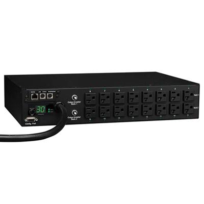 Tripp Lite Switched, Metered Rack Power Distribution Units enable a variety of advanced network control and monitoring functions by giving IT Managers the ability to turn on, turn off, recycle or lock-out power to each individual receptacle and remotely monitor PDU power consumption and in-rack environmental conditions. Switched PDU systems can be accessed, configured and controlled through secure web, SNMP or Telnet Interface. Individually switched outlets can be controlled via a built-in web/network interface, enabling remote reboot of unresponsive network hardware. User defined power-up and power-down outlet sequences ensure proper operation of interdependent IT systems and prevent inrush-related overloads as devices are powered on. Programmable load-shedding of less critical devices at user-defined intervals extends UPS uptime in response to power failures. Unused PDU outlets can be electronically locked-off to prevent powering of unauthorized hardware. PDU power consumption (current) is displayed locally and can be monitored via the web/network interface, with user-defined alarms to warn of potential overloads before critical IT mains or branch breakers trip. Optional ENVIROSENSE temperature/humidity probe enables remote monitoring of in-rack environmental conditions and alarms for up to 3 user supplied contact-closure sensors. Supports real-time monitoring, notification and logging of all on-board reporting functions with user-specified alarm thresholds and actions for each reported condition. Switched PDU systems can be accessed, configured and controlled through secure web, SNMP or Telnet Interface.