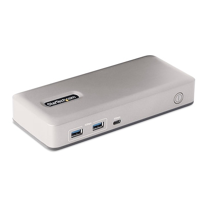 USB-C docking station enables single/dual monitors (up to 2x 2560×1440 60Hz through DP & HDMI or 1080p VGA) via MST – DisplayPort 1.4 HDMI 2.0b and VGA video outputs – Driverless setup – Windows/ChromeOS – Port Replicator w/7-port USB hub: 2x USB-A (5Gbps); 1x USB-C (5Gbps); 4x USB 2.0 Type-A -Features Locking USB-C host port with USB-IF Certified 3.3ft Locking USB-C host cable – 85W PD 3.0 w/included power adapter – Mounting holes for optional bracket K-Slot & Nano Slot for lock (not incl)