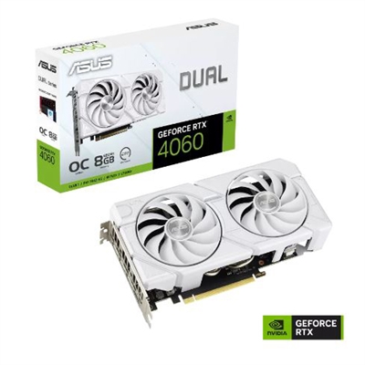 ASUS Dual GeForce RTX 4060 EVO White OC Edition 8GB GDDR6 (PCIe 4.0, 8GB GDDR6, DLSS 3, HDMI 2.1a, DisplayPort 1.4a, Axial-tech fan design, 0dB technology, Dual BIOS, Auto-Extreme Tech)