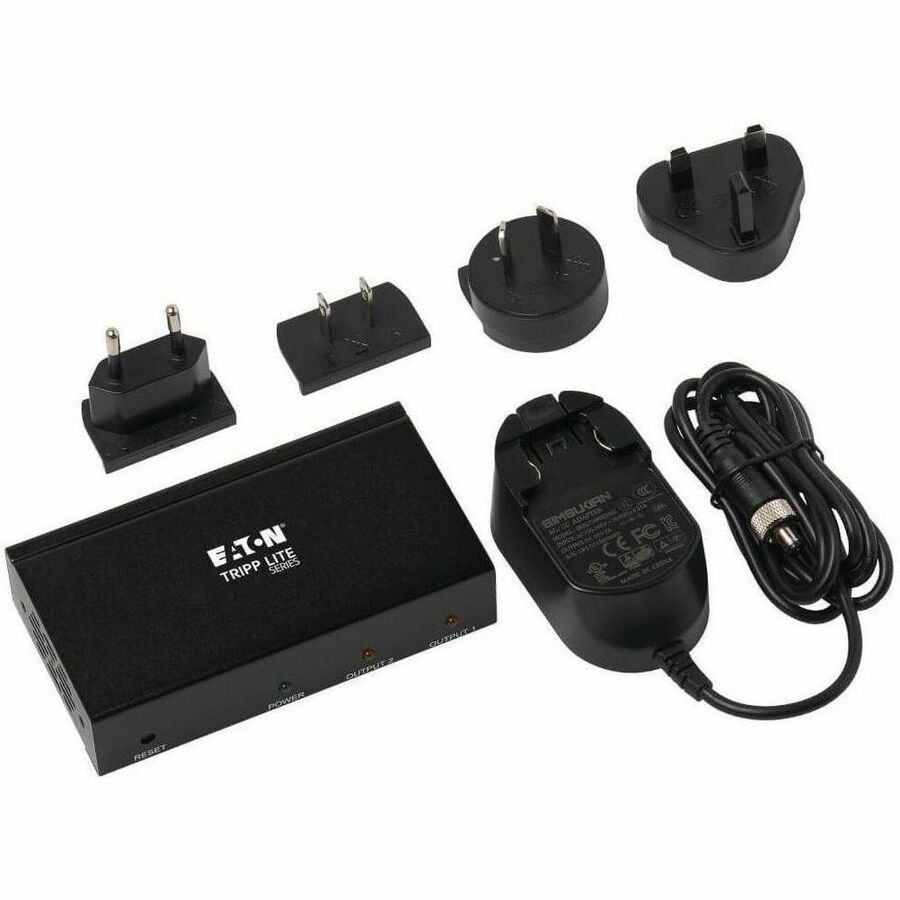 The plug-and-play B118-002-HDR requires no additional software or drivers. Connect your devices to the HDMI ports with user-supplied HDMI cables (such as Tripp Lite’s P569-Series), and plug the included external power supply (with four international plug adapters to ensure use all over the world) into an AC power source to get started. A green LED indicates the unit is receiving power, and orange LEDs indicate connected HDMI inputs. Use the included hardware to install the unit on a desktop or mount it to a wall.