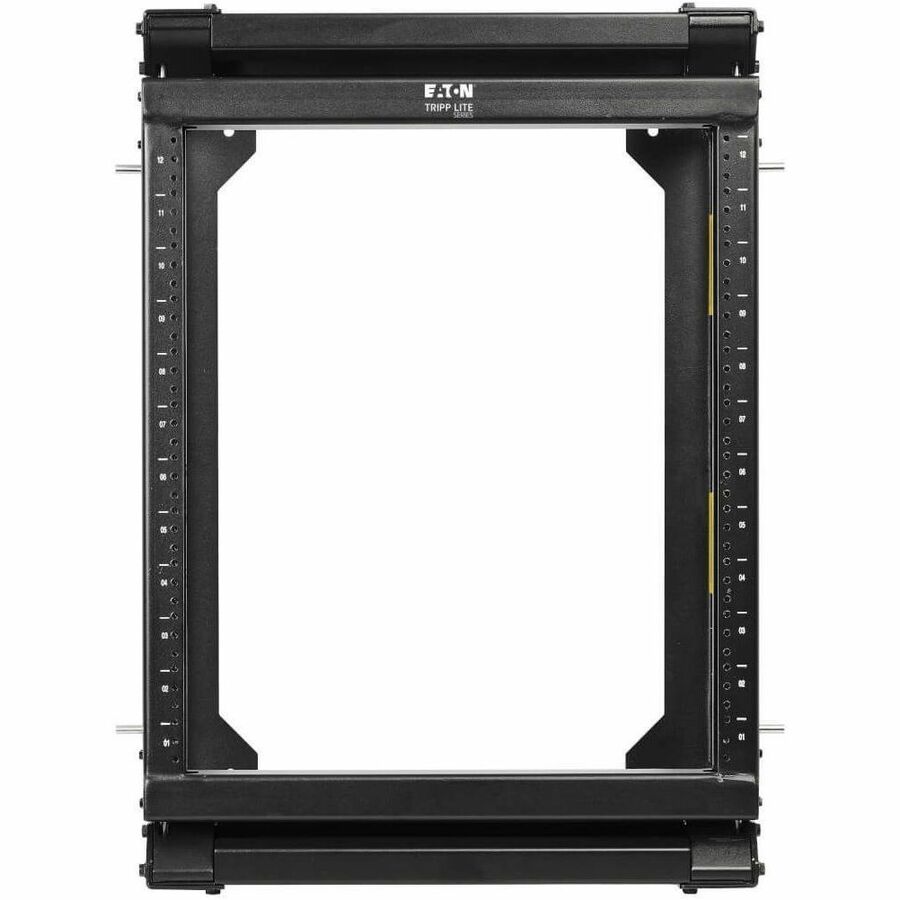 The SRWO12US2 open frame rack stores and organizes 12U of EIA-standard 19-inch rack equipment compatible with 2-post mounting. Designed for wall mounting, the rack saves space in network wiring closets, back offices and other secure areas with limited floor space where a locked enclosure is not required. The 2-post rack is made of heavy-duty steel with a durable black powder-coated finish. Maximum load capacity is 150 pounds (68 kilograms).