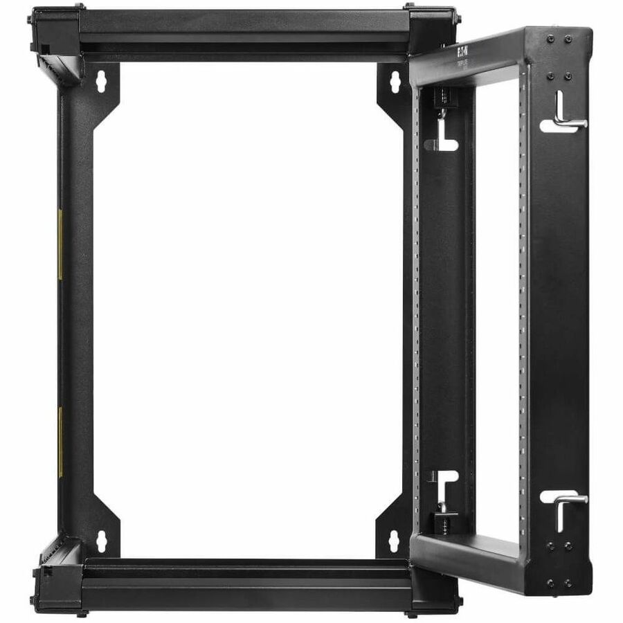 Wall-mount open frame rack stores 12U of 19-inch rack equipment up to 22 inches deep and swings open for maximum accessibility.
