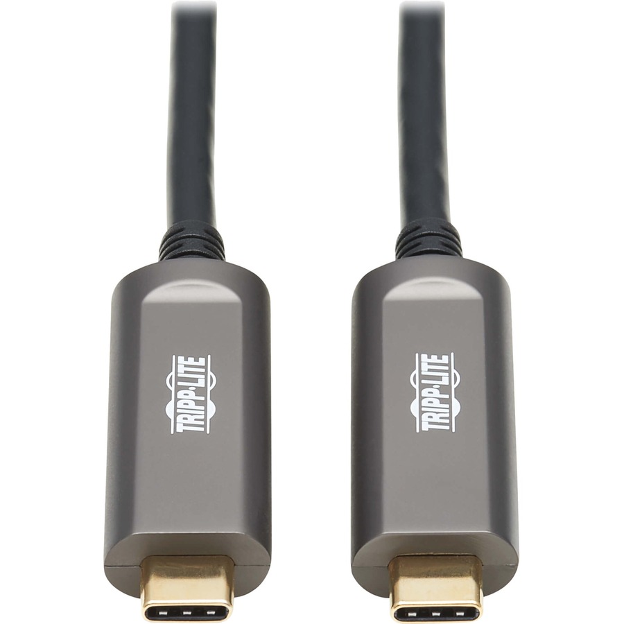 This USB 3.2 Gen 2 fiber optic cable (M/M) securely connects the USB-C port on your desktop, laptop or notebook computer to a USB-C device, such as a server, external hard drive or surveillance camera, located up to 15 meters (49 feet) away. This data-only cable supports USB 3.2 Gen 2 data transfer rates up to 10 Gbps.