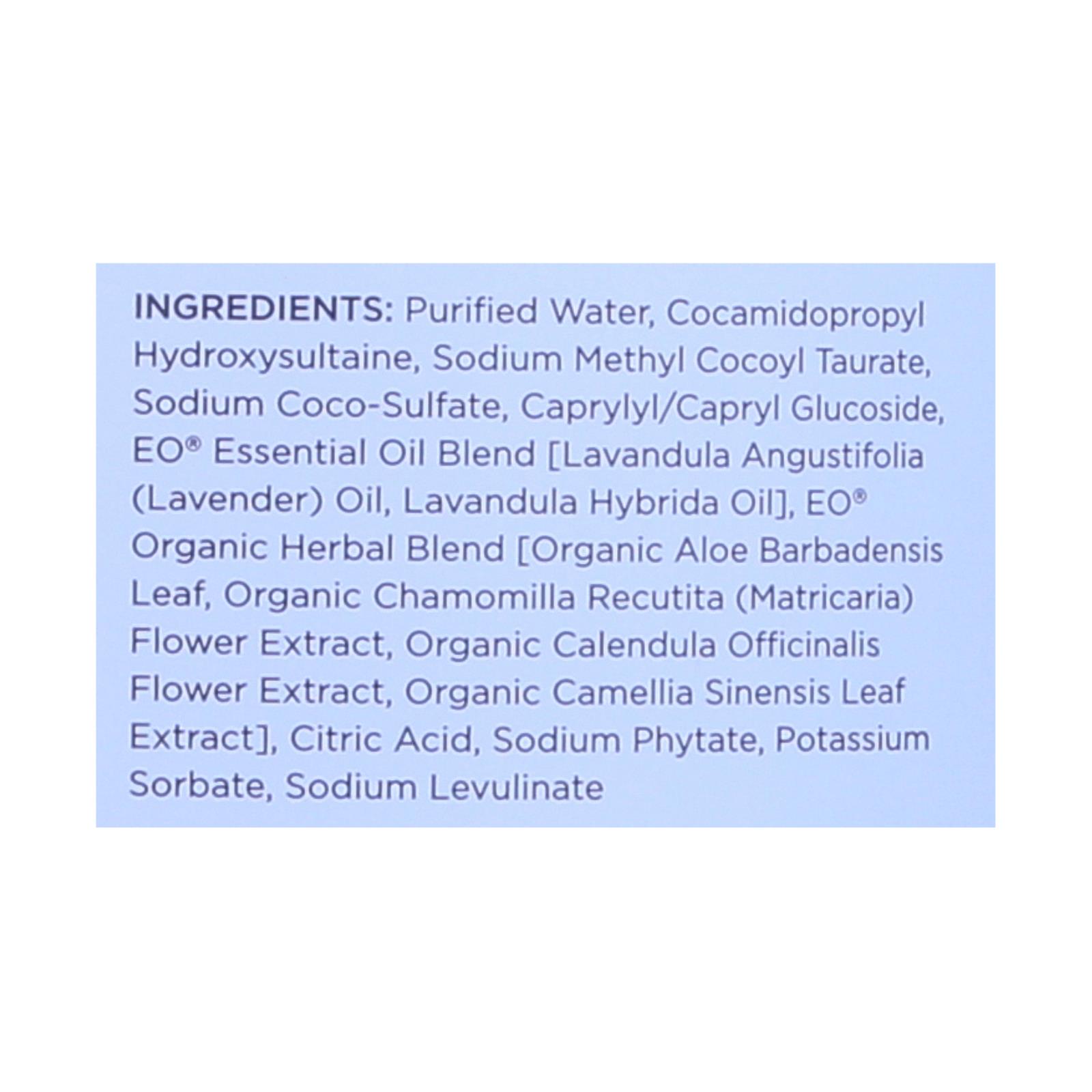 EO ESSENTIAL OILS HAND SOAP, FRENCH LAVENDER IS MADE WITH NATURAL INGREDIENTS AND IS PARABEN FREE, PHTHALATE FREE, SYNTHETIC FRAGRANCE FREE AND SULFATE FREE. AS THE SCENT OF PURE LAVENDER ESSENTIAL OIL RELAXES YOUR SENSES, LET FIG, HOP, ALOE VERA, CHAMOMILE, CALENDULA AND WHITE TEA EXTRACTS REPLENISH YOUR HANDS. BE RELAXED AND DISCOVER YOUR NATURAL BEAUTY. THIS IS A ONE GALLON BOTTLE.