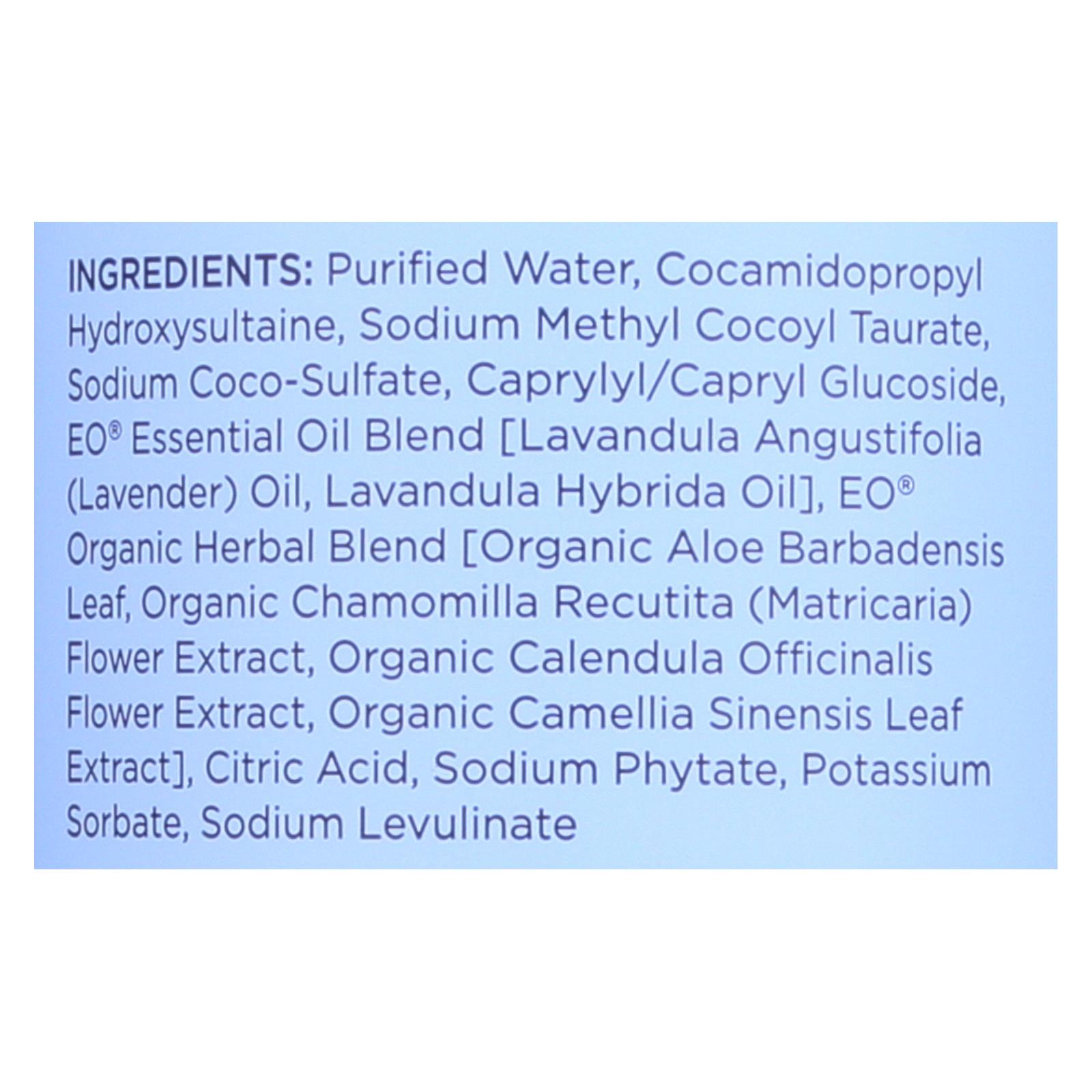 EO ESSENTIAL OILS LIQUID HAND SOAP, FRENCH LAVENDER REFILL IS MADE WITH NATURAL INGREDIENTS AND IS PARABEN FREE, PHTHALATE FREE, SYNTHETIC FRAGRANCE FREE AND SULFATE FREE. AS THE SCENT OF PURE LAVENDER ESSENTIAL OIL RELAXES YOUR SENSES, LET FIG, HOP, ALOE VERA, CHAMOMILE, CALENDULA AND WHITE TEA EXTRACTS REPLENISH YOUR HANDS. BE RELAXED AND DISCOVER YOUR NATURAL BEAUTY. THERE ARE 32 FL. OZ. IN EACH BOTTLE.
