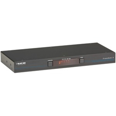 Switch between separate computer systems simply by moving a mouse cursor from monitor to monitor. The Freedom II KM Switch with Glide & Switch enables a single user to easily access information and control operations across the computer systems and monitors saving time money and space. The Freedom II works like an extended desktop switch on a single computer. Once you configure your screen layout for the attached PCs with up to four external displays switching ports is as simple as moving your mouse cursor over the screens’ X and Y borders.Freedom is ideal in command and control applications such as those in finance on a trading room floor. Not only can users switch between several computers just by moving the mouse but they can also simultaneously access a mix of USB peripherals including high-speed USB 2.0 devices.Additionally the Freedom II KVM Switch integrates with the Black Box Agility IP-based KVM system. This Freedom II KM Switch can interface with Agility receivers and then switch the Agility targets using just one keyboard and mouse.The Freedom II KM Switch is ideal for command and control applications such as in Broadcasting ,Public safety , Industrial Defense Transportation.