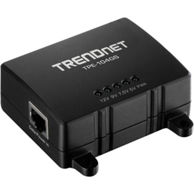 TRENDnets Gigabit PoE Splitter, model TPE-104GS, networks a non-PoE device in a remote location using a PoE network connection. The TPE-104GS splits a Gigabit PoE connection into separate power and Gigabit data sources. A handy toggle switch adjusts output power to 5 V, 7.5 V, 9 V, or 12 V in order to match non-PoE device power requirements. The included 2 and 2.5 mm jumper cables increase power pin device compatibility.