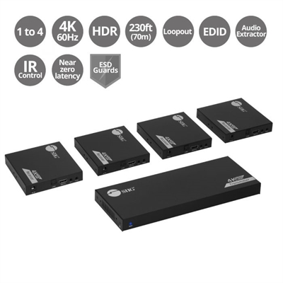 1×4 4K 60Hz HDMI Splitter Over Cat6 Extender with Loopout, IR, ARC & RS-232