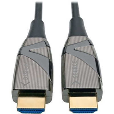 4K HDMI 2.0 Cable Connects Home Theater, Gaming & Digital Signage Components. This high-speed HDMI 2.0 cable securely connects HDMI-enabled laptops, tablets, PCs, Blu-ray players, game consoles or satellite/cable TV boxes to HDTVs, HD monitors, projectors or home theater receivers. Because the cable uses optical fiber, it can transmit HDMI signals longer distances with no latency or loss. It also eliminates any EMI/RFI line noise that can interfere with your audio/video signal and disrupt the performance of your connected equipment. Enjoy the Clarity of True 4K HDMI 2.0 Video with Multi-Channel Audio and 4:4:4 Color This 4K HDMI cable is rated up to 18 Gbps and supports Ultra HD video resolutions up to 3840 x 2160 (4K x 2K) at 60 Hz for crystal-clear picture and sound. It’s compatible with HDCP 2.2 and HDMI 2.0 standards for carrying HDR (high dynamic range) signals. It also supports 4:4:4 chroma subsampling for top-level PC gaming or using your HDTV as a PC monitor, as well as other current HDMI standards, including 3D, 48-bit Deep Color, DTS-HD Master Audio and Dolby True HD. Advanced Fiber Cable Is Easier to Install than Copper Because the fiber cable is slimmer and more flexible than standard copper HDMI cables, the P568-15M-FBR is easier to install around corners and in hard-to-reach spaces behind equipment. It draws power from the connected device, so no external power supply is needed to transmit the HDMI signal across the longer distances unique to fiber optic cabling. Note: the cable must be installed in the correct direction to function properly, so please check the Source and Display labels on the connectors before installation.