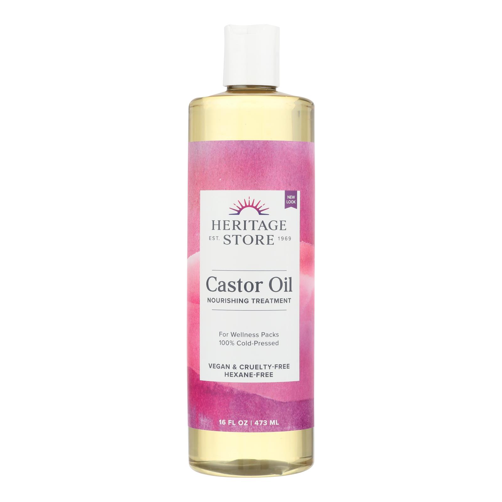 HERITAGE STORE THE PALMA CHRISTI CASTOR OIL IS PURE, COLD-PRESSED OIL THAT’S IDEALLY SUITED FOR USE IN HEALTH PACKS AND FOR HELPING YOUR SKIN BECOME SOFT AND SMOOTH. THE OIL IS FREE OF HEXANE AND PESTICIDES, AND IT’S RECOMMENDED IN EDGAR CAYCE READINGS FOR NATURAL TREATMENT OF ILLNESSES. THIS BOTTLE CONTAINS 16 FL. OZ. OF ECO-FRIENDLY OIL.