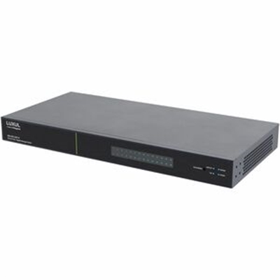 This switch is a 24 port PoE+ rear-facing single space rackmount 1Gb switch with 4 SFP+ 10Gb ports (aggregable up to 40Gbps) with a total PoE power budget of 370W. Each of the SFP+ ports can be used alone or aggregated together to allow 20 or 40Gbps throughput to another switch. This L2/L3 switch with 128Gbps switching capacity provides VLAN, QoS and other powerful management features. Up to 16 switches can be grouped in a single pane user-interface allowing easy and comprehensive administration. Variable speed fans for quiet operation. ProWatch Integrated for support of remote monitoring and management.
