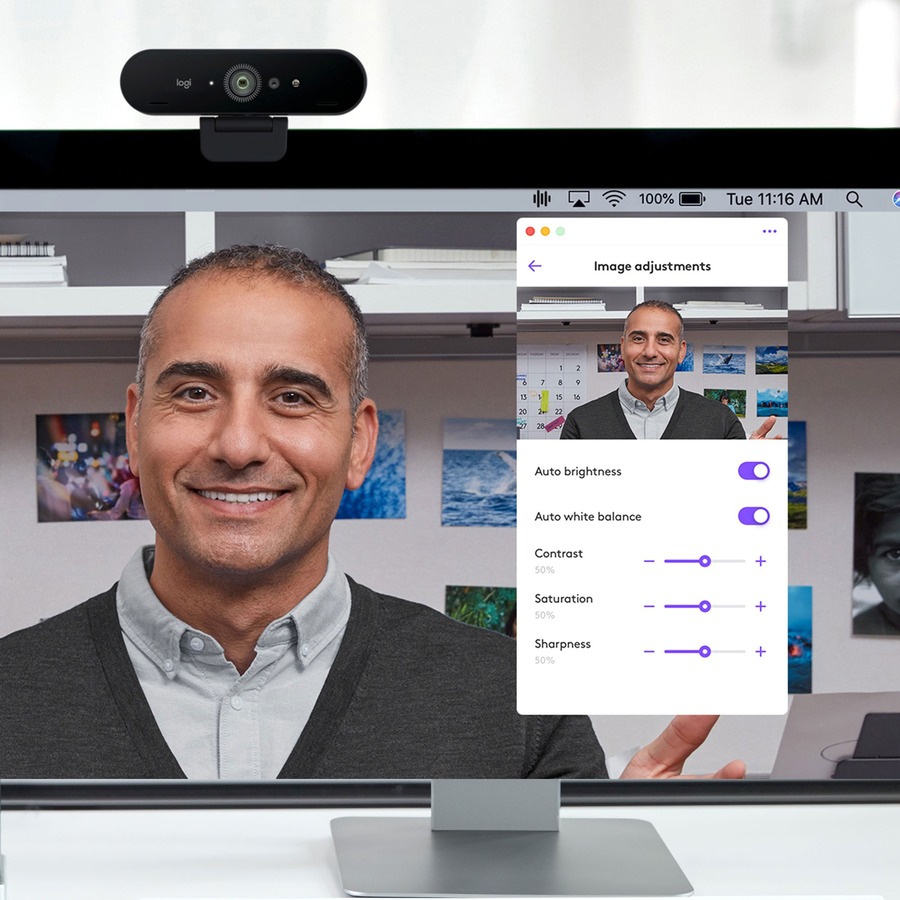 Achieve video collaboration excellence at your desk with a 4K webcam designed for professional-grade performance and results. Logitech 4K Pro Webcam captures every video detail with outstanding resolution, color and detail. Asynchronous presentation sharing and video recording are ultra-smooth, vividly clear and- with frame rates up to 90 fps-the camera provides a remarkably sleek and fluid video stream.