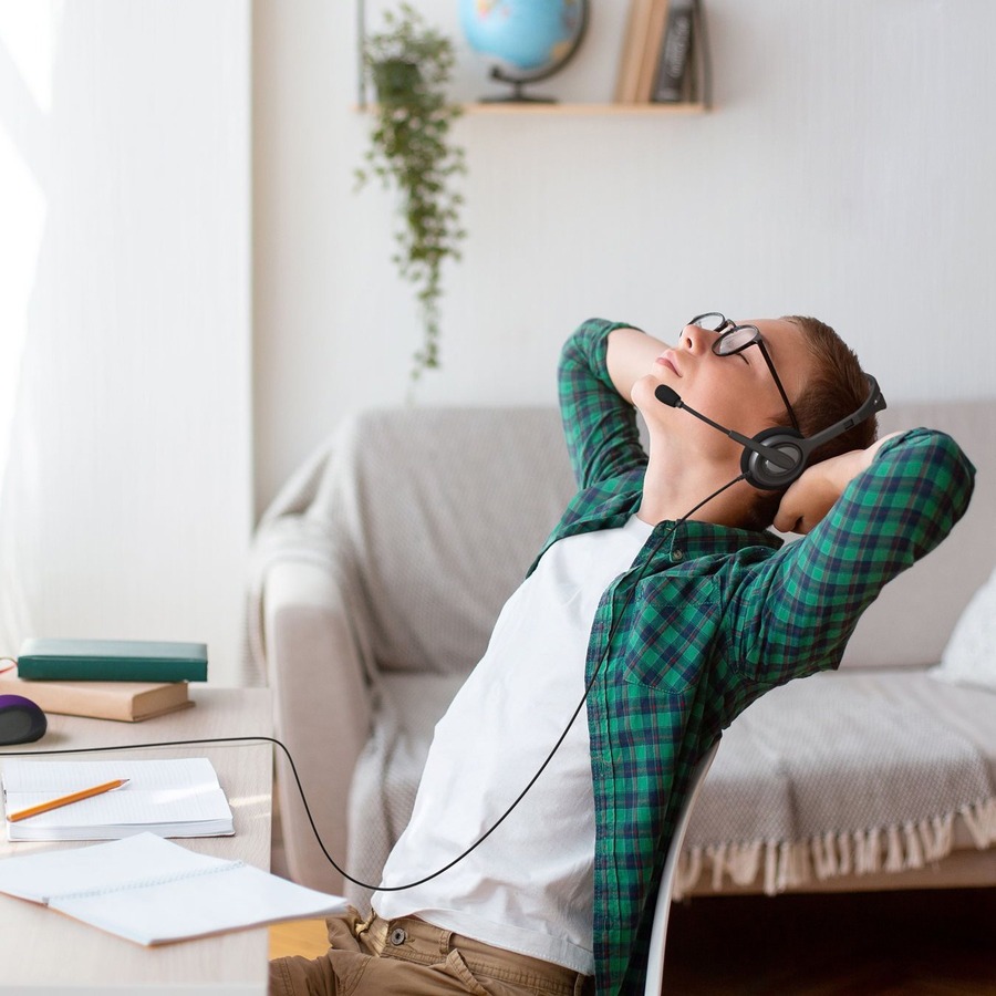- FULL STEREO SOUND – lets students hear and be heard clearly.