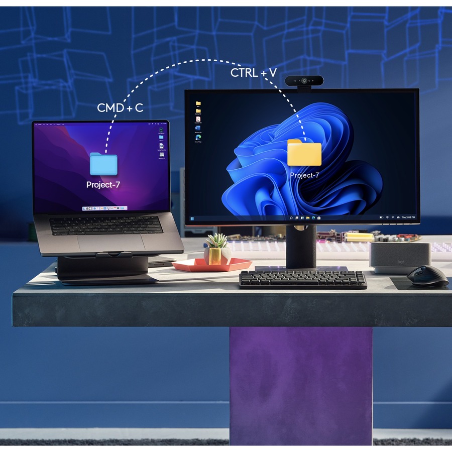 Logi Options+ lets you flow between computers by simply moving your cursor to the edge of the screen. Your MX keyboard follows your MX Master 3S and lets your workstream flow between Windows and macOS.
