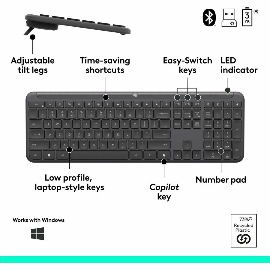 Logitech Signature Slim MK955 Combo for Business, Copilot Edition, Wireless Keyboard and Mouse, Graphite – USB Type A Wireless Bluetooth 5.1 Keyboard – Graphite – USB Type A Wireless Bluetooth Mouse – Scroll Wheel – Graphite – CoPilot Hot Key(s) – AA, AAA – Compatible with Computer for PC – 1