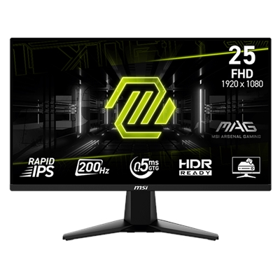 MAG 255F E20 Flat Gaming Monitor; Metallic Black; 24.5″ Screen Size; Rapid IPS Panel; 1920 x 1080 FHD Resolution; Adaptive Sync; HDR Ready; non-glare; 200Hz Refresh Rate; Tilt Adjustable