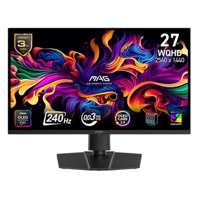 MAG 273QP QD-OLED X24 Flat Gaming Monitor; 27″ Screen; Metallic Black; QD-OLED Penel; 2560 x 1440 QHD Resolution; Adaptive Sync, True Black HDR 400; Glare with narrow bezel; 240Hz Refresh Rate; Tilt, Swivel, Height and Pivot Adjustable